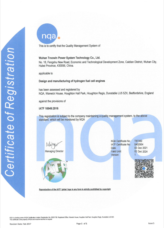 武漢眾宇動力系統(tǒng)科技有限公司(下稱眾宇)通過IATF16949:2016汽車質(zhì)量管理體系認(rèn)證,經(jīng)國家認(rèn)證認(rèn)可監(jiān)督管理委員會審核并頒發(fā)證書。