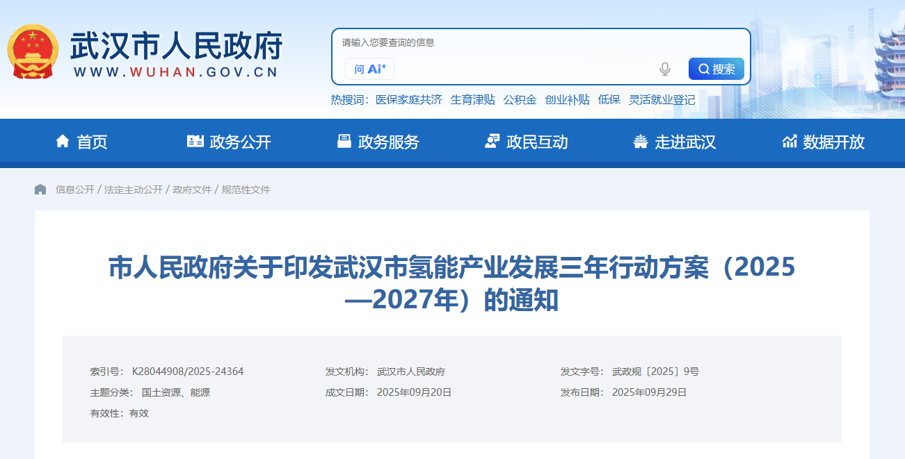 作為國家中心城市、長江經(jīng)濟(jì)帶核心城市和中部崛起戰(zhàn)略支點(diǎn),武漢是國內(nèi)較早布局氫能產(chǎn)業(yè)發(fā)展的城市之一,依托其雄厚的工業(yè)基礎(chǔ)、豐富的科教資源,武漢已構(gòu)建起從制氫、儲運(yùn)到燃料電池及下游應(yīng)用的完整產(chǎn)業(yè)鏈,聚集了一批氫能龍頭企業(yè)和科研機(jī)構(gòu)。就在兩個月前,武漢正式出臺《武漢市氫能產(chǎn)業(yè)發(fā)展三年行動方案(2025—2027年)》,開啟新一輪的氫能產(chǎn)業(yè)發(fā)展行動。